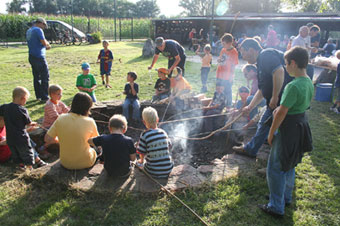 Ausgerüstet mit Taschenlampe und Grillstock trafen sich am vergangenen Freitag zahlreiche Väter und Söhne an der Neulußheimer Grillhütte zum Kinderferienspaß der Neulußheimer Sozialdemokraten. Gespannt auf den Abend setzte sich die Gruppe um Jörg Wildenstein in Richtung Blausee in Bewegung. Die Wanderung entlang des Kriegbaches endete nach einer halben Stunde auf dem Vereinsgelände des Sportfischerclubs „Petri Heil“. Hier hatte Volkmar Thorn schon alles für das leibliche Wohl vorbereitet, sodass man sich gleich stärken konnte. Es prasselte bereits ein großes Lagerfeuer und es dauerte keine fünf Minuten, bis alle Jungs mit ihren Grillstecken am Feuer saßen. Dass es doch einiger Übung und Erfahrung bedarf, eine Grillwurst fachgerecht aufzuspießen, mussten Väter und Söhne gleichermaßen auch dieses Jahr wieder erfahren. Es war deutlich an den Gesichtern abzulesen, wessen Wurst - fast fertig gebraten - gerade vom Stock gefallen war und von den Flammen verschluckt wurde. Doch zum Glück war für ausreichend Proviant gesorgt, und keiner musste hungern. Und auch das gehört dazu, dass beim anschließenden Fußballspielen der Ball im Blausee landete. Doch im Gegensatz zum vergangenen Jahr stand diesesmal kein Fischerboot zur Verfügung. So erbarmte sich ein Vater und sprang, unter Beifall aller Anwesenden, in das kalte Nass, um das begehrte Leder zu retten.