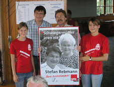 Als einen Höhepunkt der Veranstaltung versteigerte Rebmann ein Wahlplakat, das ihn mit seiner Schwiegermutter zeigt. Slogan: „Schwiegermütter irren nie“. Das Besondere: Das Plakat ist signiert von sämtlichen SPD Größen wie Gerhard Schröder, Wolfgang Thierse, Franz Müntefering bis hin zu Anke Fuchs und Klaus Wowereit. Die 160 Euro, die der neue Besitzer Bürgermeister Greiner geboten hat, kommen einem sozialen Zweck zugute.