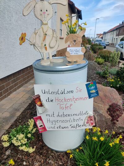 In der Zeit von Montag, 23.3. bis Samstag, 28.3.2023 werden wieder große Infotonnen, mit dem Hinweis auf die Sammelaktion für die Hockenheimer Tafel an verschiedenen Stellen im Ort aufgestellt. In den danebenstehenden Körben können wieder nur haltbare Lebensmittel eingelegt werden. Auch Körperhygieneartikel können gebracht werden.